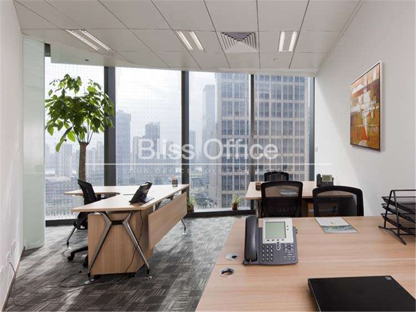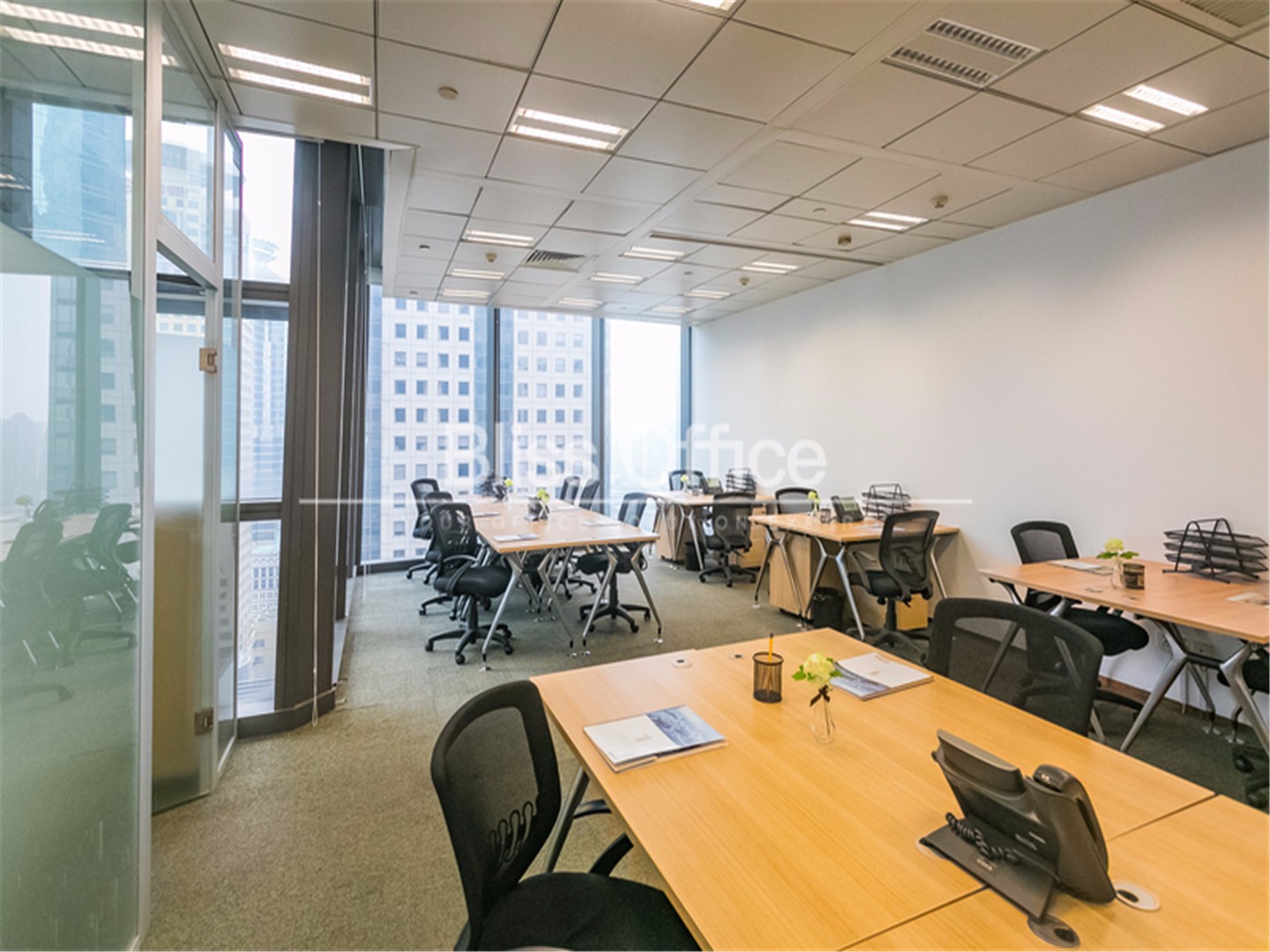 時代金融中心商務中心,位於浦東新區銀城中路68號,麵向黃浦江,位置優越。樓層總麵積約2000平方米,有46間服務式辦公室和3間會議室、1間培訓室。