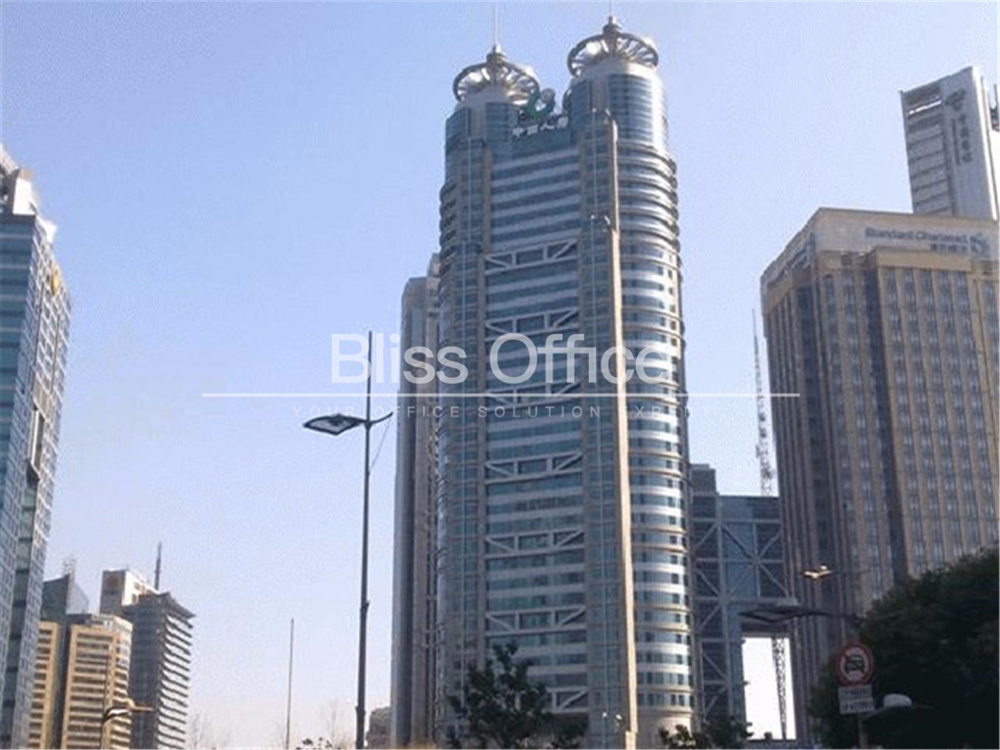 大廈麵向申城浦江,遙對東方明珠。正立麵有開闊的視野帶,可縱觀浦江兩岸風生水起、萬千氣象,亦可飽覽樓前十多公頃中央花園的自然風光,令人心曠神怡。