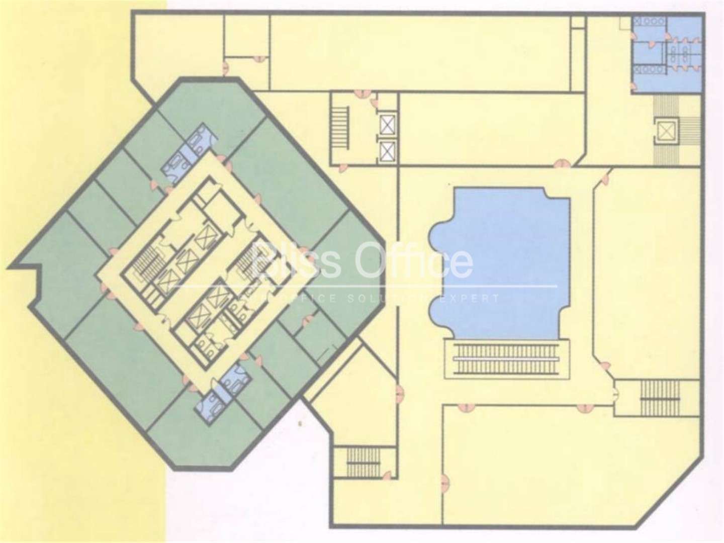 裕安大廈裏麵有傳統辦公和聯合辦公多種產品可選。