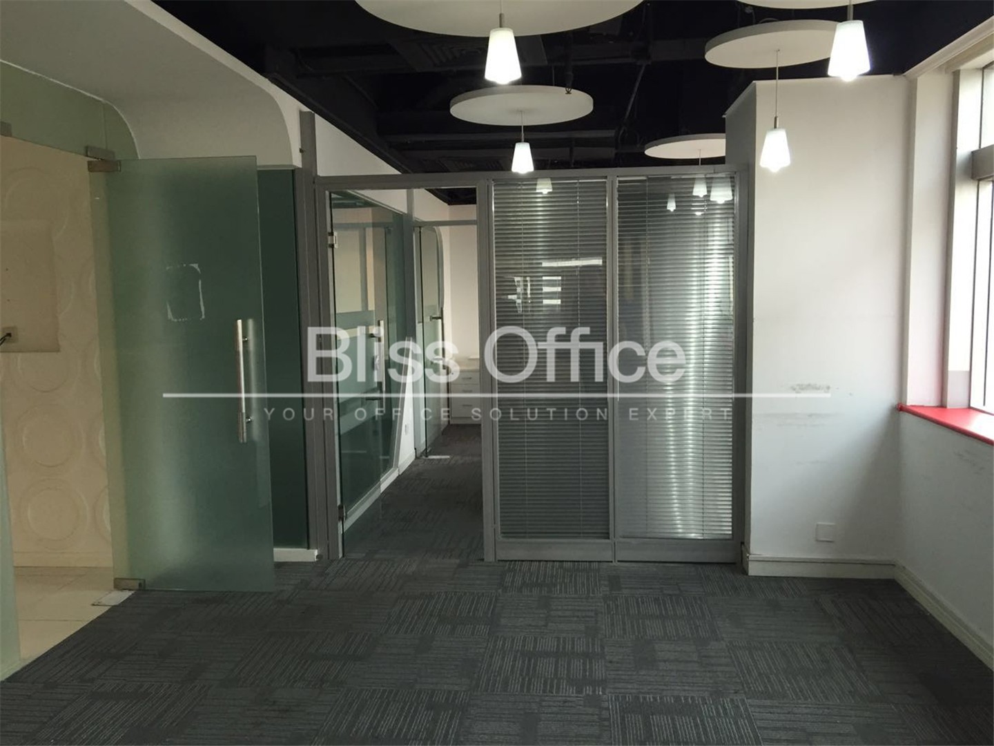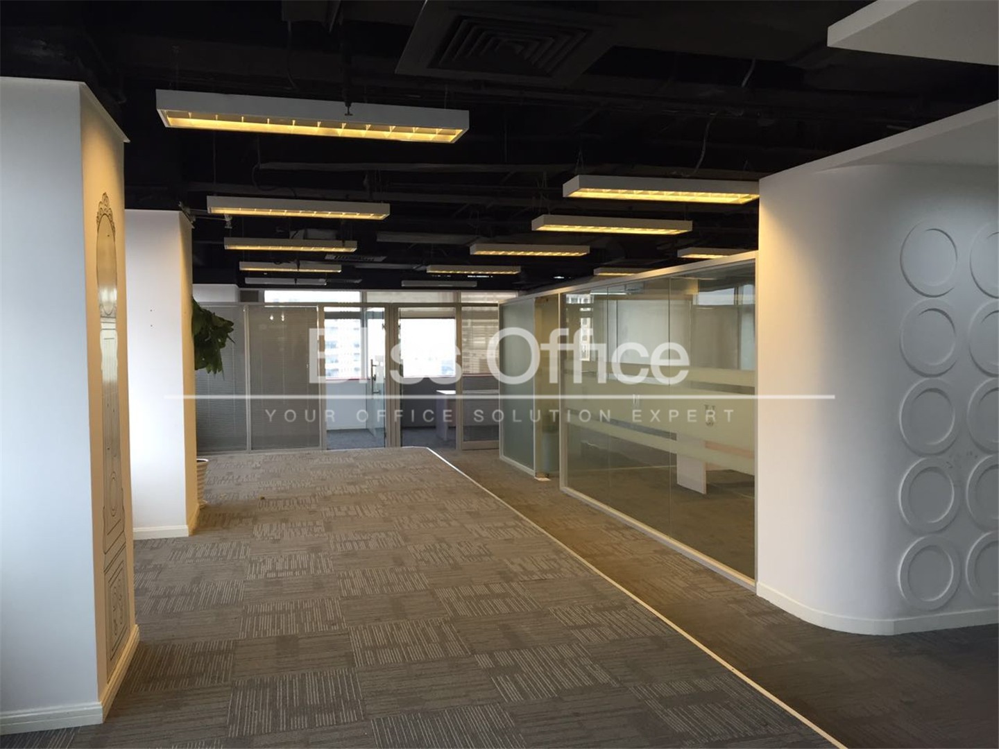 大廈室內輕鋼龍骨ARMSTRONG吊頂地坪鋪防靜電地毯、消防噴淋、煙感報警、衛星電視、電話通訊等設備齊全。