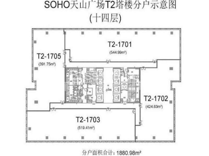 SOHO天山廣場出租270方戶型,房型方正,地鐵上蓋